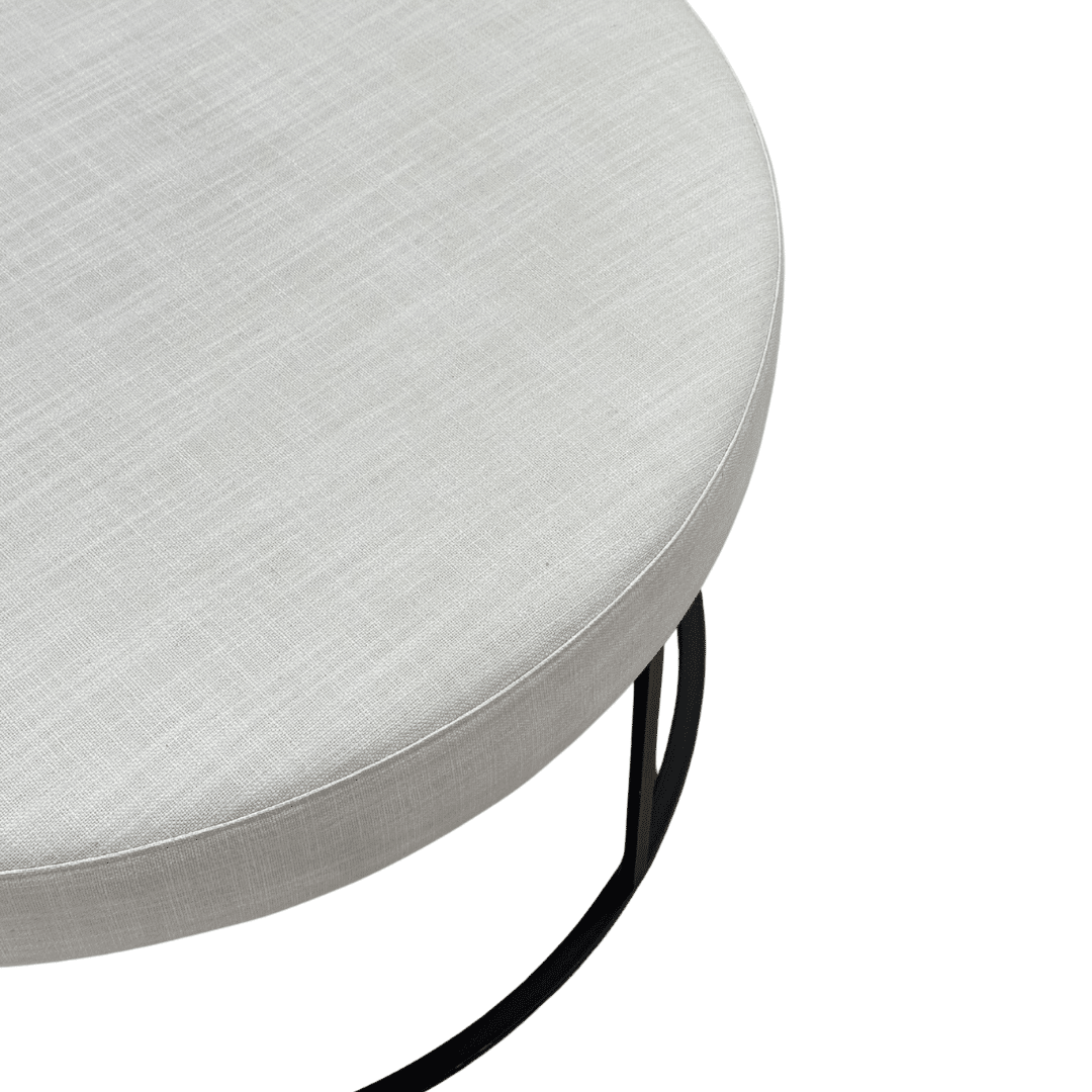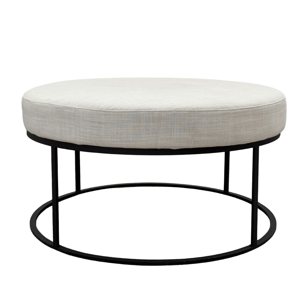 The Ace Ottoman in Black + Ivory is a versatile styling piece that brings balance, texture and structure to living spaces. Featuring a generous round upholstered top in soft ivory linen, elevated by a sleek black metal frame, this piece introduces a refined contrast that works beautifully across a range of interior palettes. Ideal as a central feature in a living room setting, the Ace Ottoman can be styled on its own as a sculptural statement or paired with a smaller coffee table for a layered, nested look.