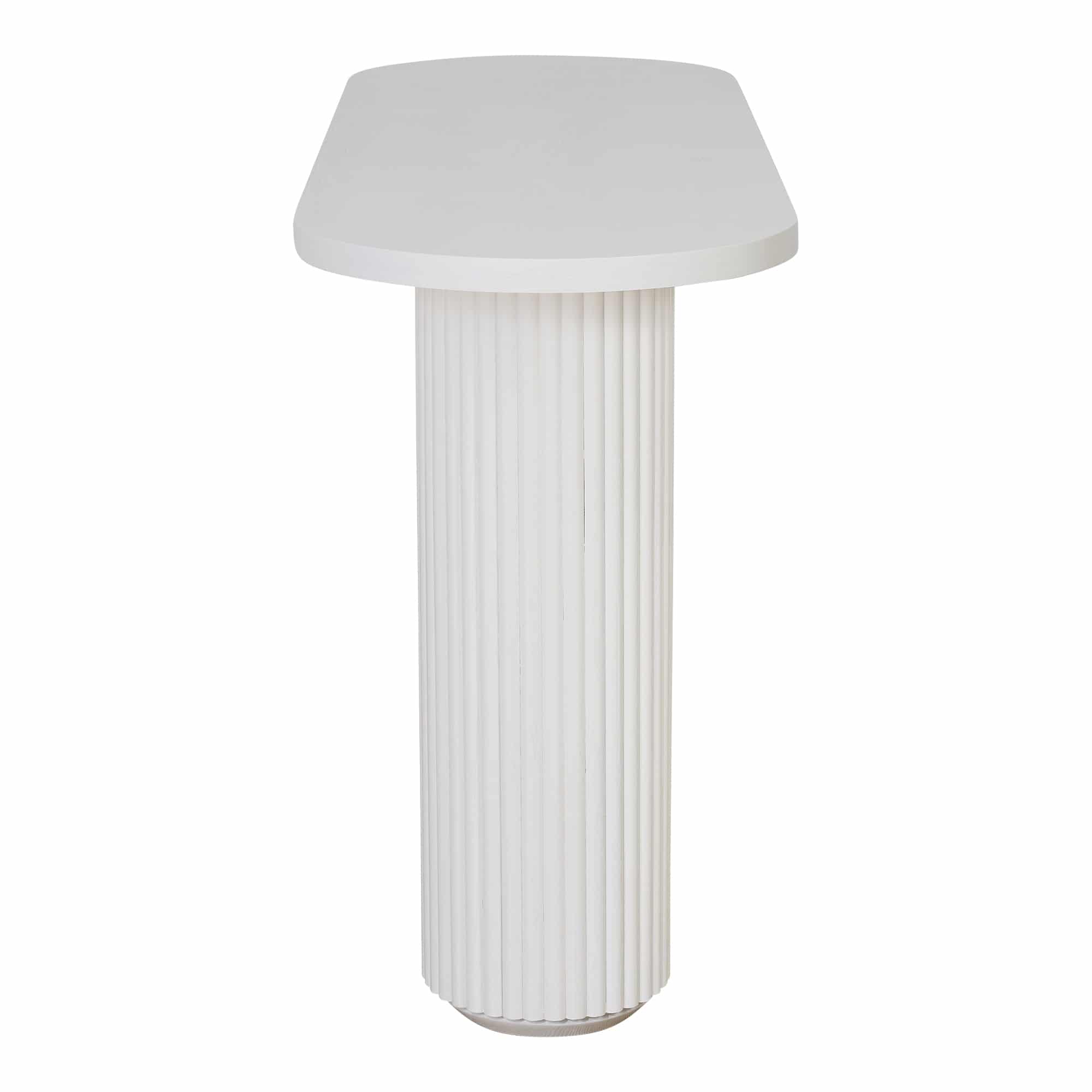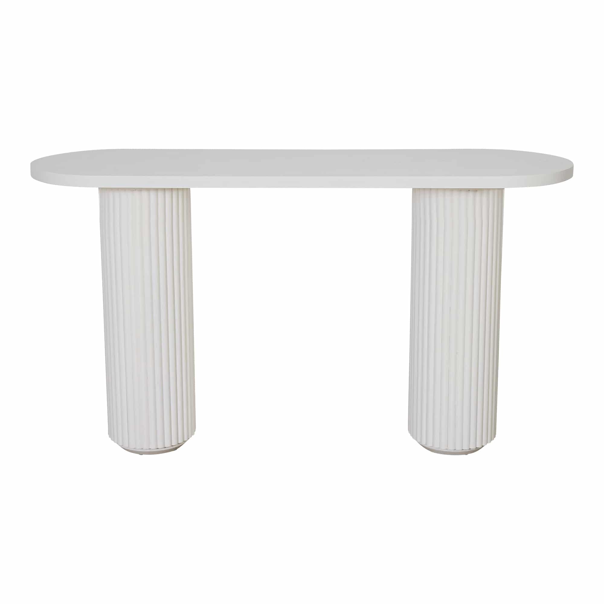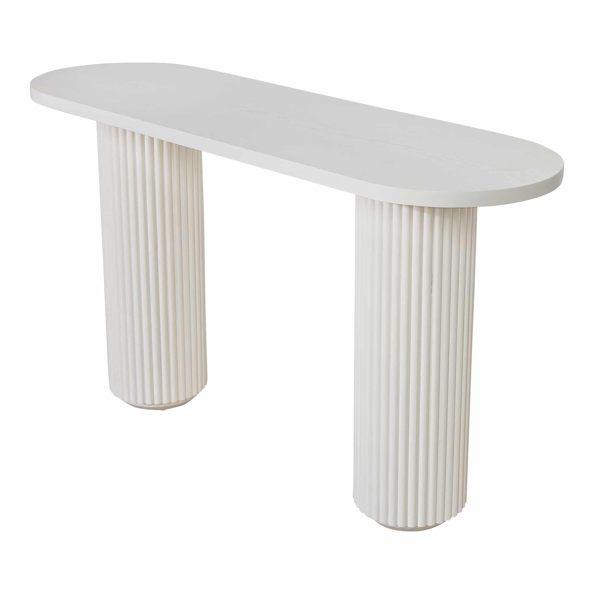 The Banks Console Table is crafted from a stunning cylindrical fluted base and contemporary oval timber top. Its show stopping curves are sure to elevate your property styling scheme. Quality craftsmanship ensures this piece is both on trend and timeless. Also available in Black, Oak and Walnut.