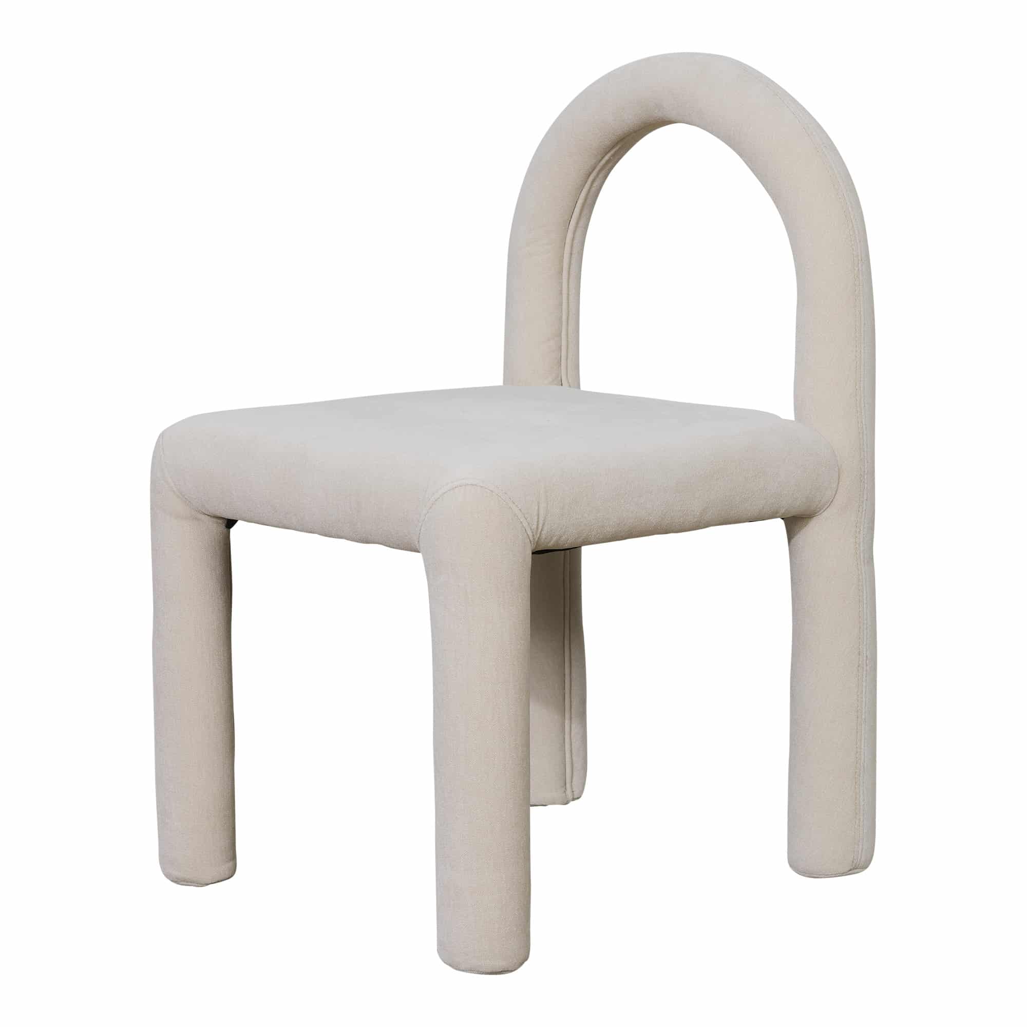 Elevate your dining space with the contemporary Cub Dining Chair, fully upholstered in a luxurious suede like fabric in a stunning natural Bone tone. Featuring a modern arched backrest and rounded legs, this beautiful chair has curves in all the right places and is sure to bring impact to your space.