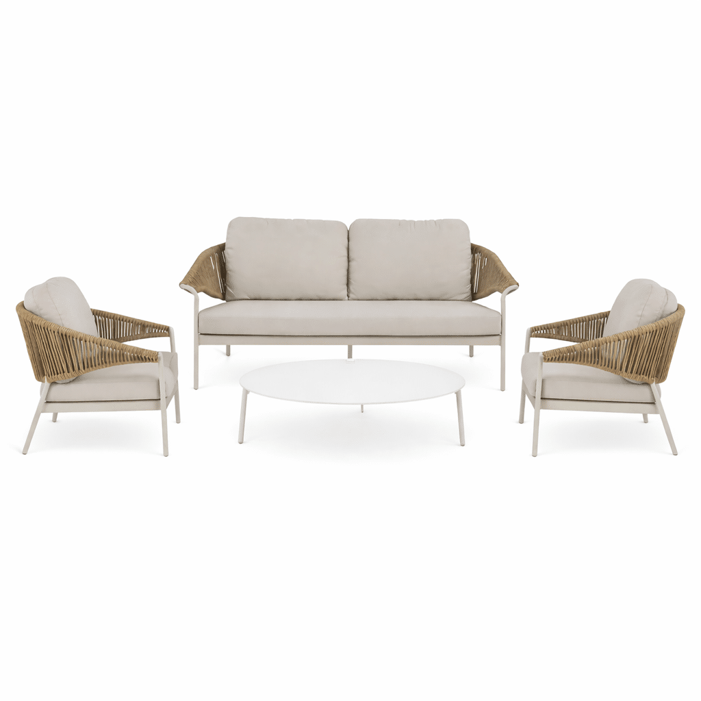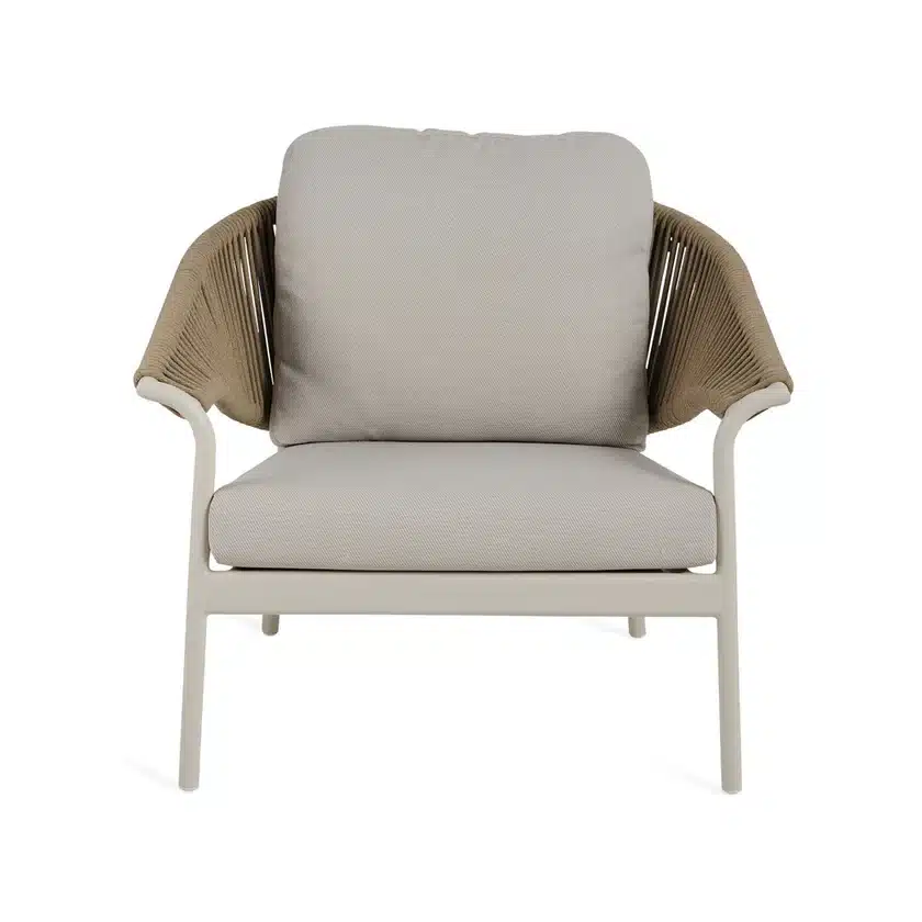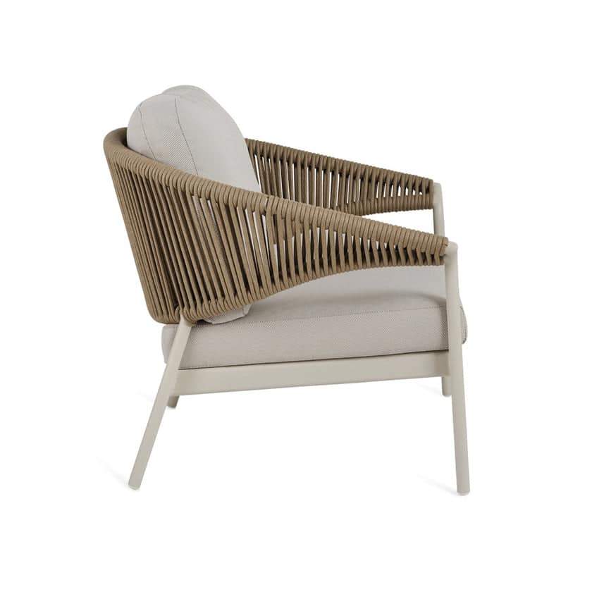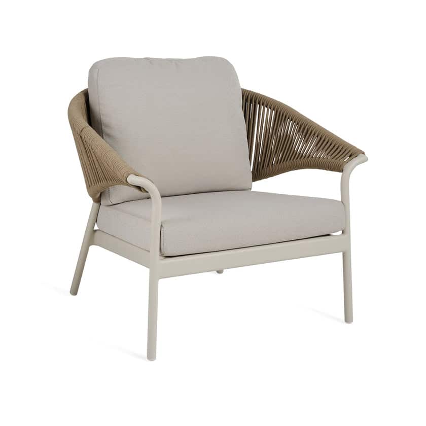 The Monaco Outdoor Armchair showcases quality aluminium craftsmanship intertwined with beautiful beige rope weaving. Elegant and refined, this armchair seamlessly blends style and form, elevating your alfresco space. Also available in matching sofa and coffee table to complete this stunning setting.