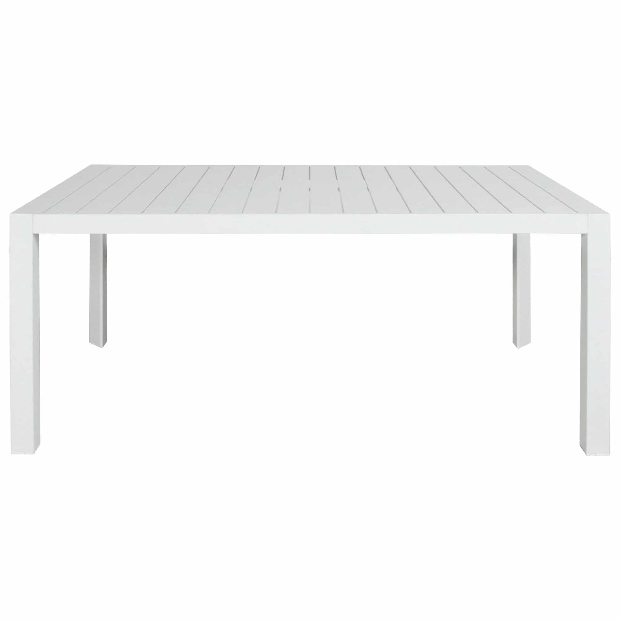 With its clean contemporary lines the Newport Outdoor Dining Table offers a sleek white finish and slatted top, making for a timeless and versatile piece for your alfresco property styling.