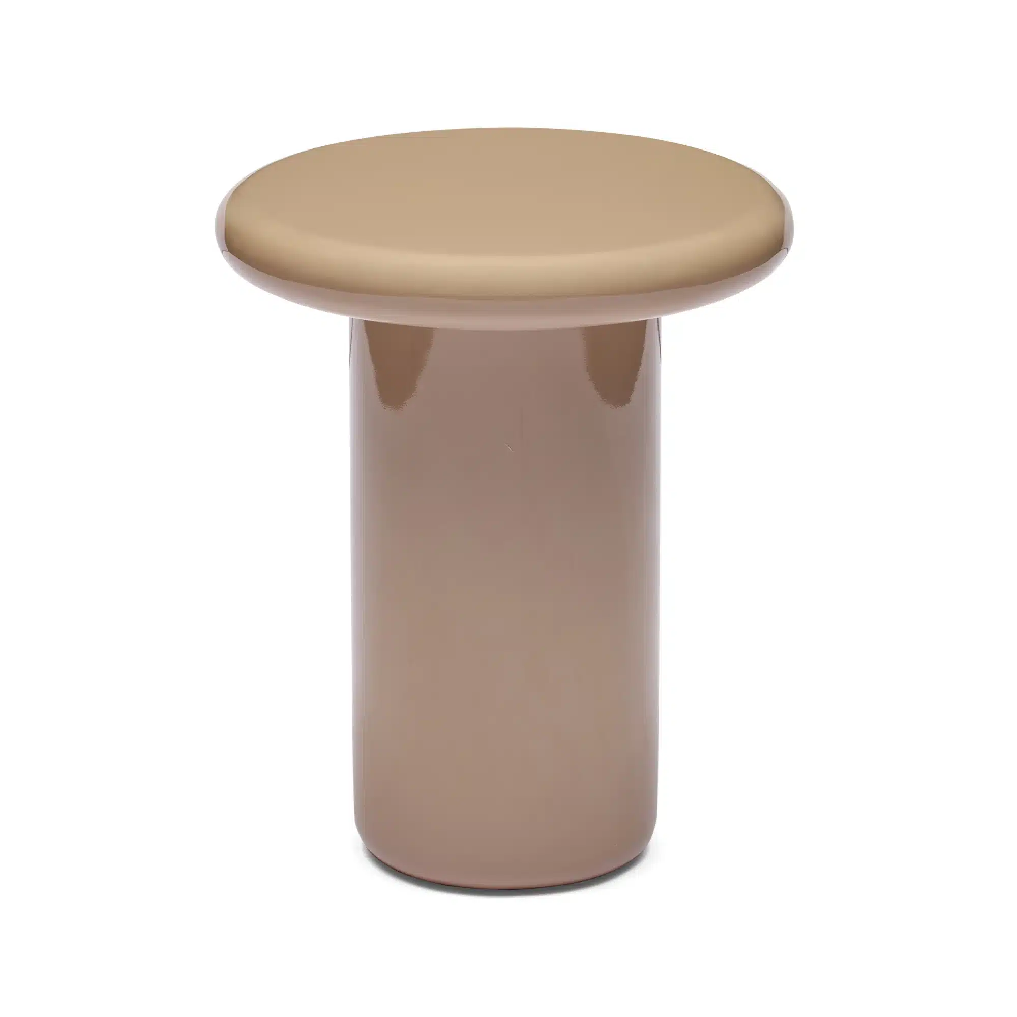 Bold yet beautifully restrained, this sculptural side table is defined by its confident cylindrical base and softly rounded top. Finished in a warm, tonal high gloss lacquer, this piece brings depth and quiet richness to a space while maintaining a clean, contemporary profile.