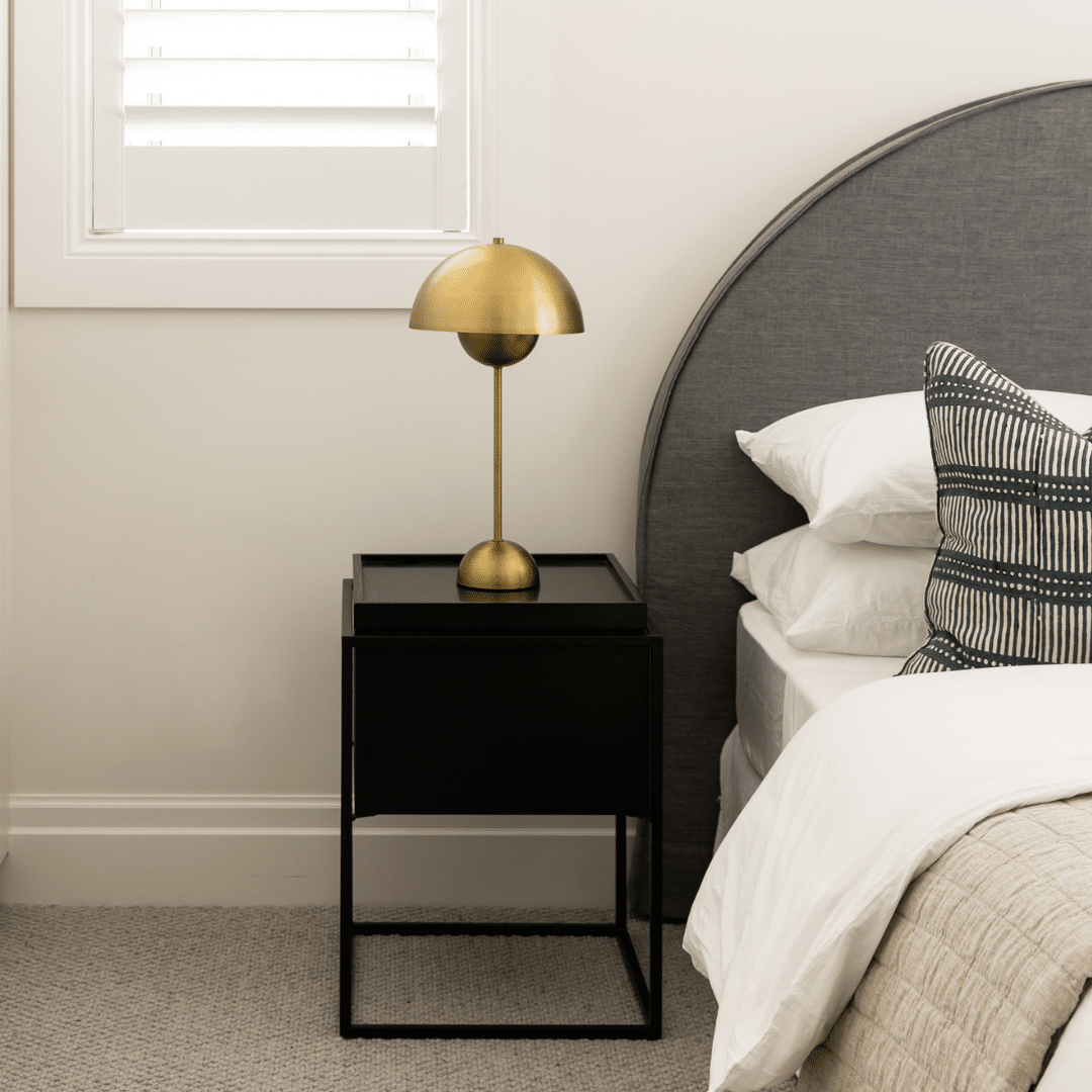 With it's clean lines and black metal frame, the Sheaf Side Table is a contemporary piece that is sure to elevate your property styling and add a modern edge. It's compact prism like design makes it ideal for smaller spaces and it doubles well as a bedside table.