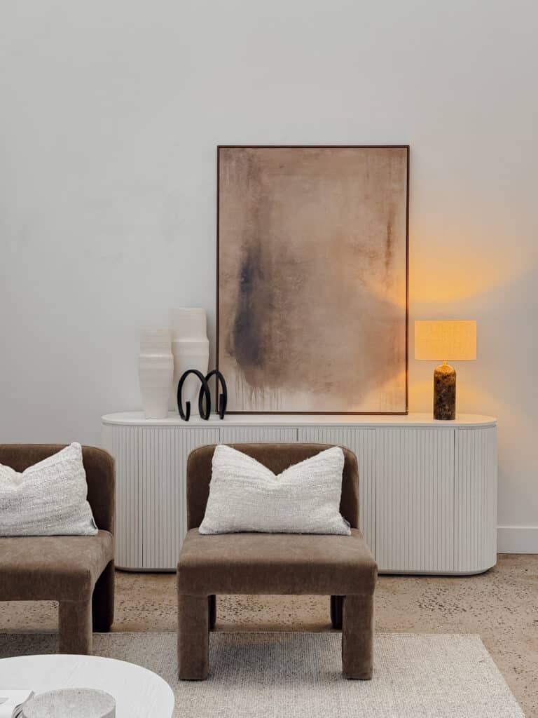 At Huntley + Co, our collection of artwork has been carefully chosen with property styling in mind – versatile, timeless, and always design-led. You can view the full collection in person at our Lane Cove showroom, and we also offer professional art hanging on the day of your install to make the process seamless.
