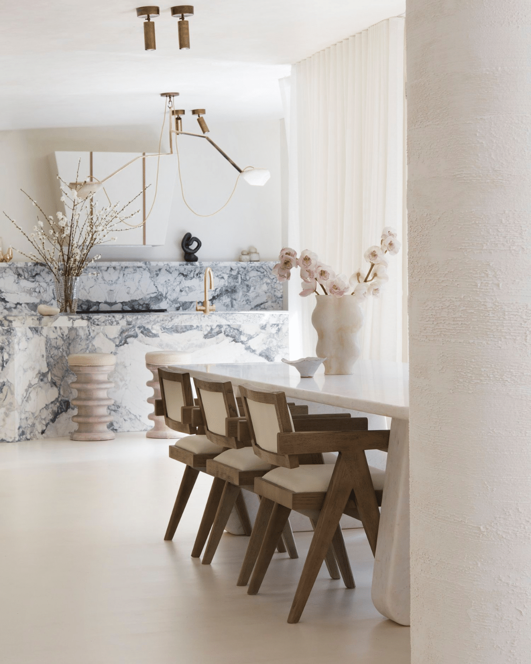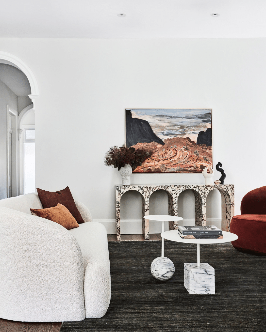 Kerrie-Ann: My style does not fit into a genre category, so I describe it as a mix of mid-century vintage and contemporary design. I use an artfully curated approach, with sculptural and organic shapes layered with texture and wrapped up in a warm, neutral palette.